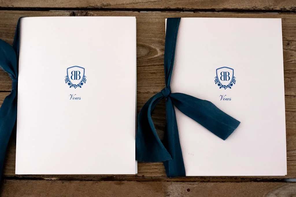 Bryn and Brendan commissioned a custom duogram with double Bs in a crest surrounded by grapes and vines for their invitation and day-of materials, perfect for their stunning wedding in Sonoma.